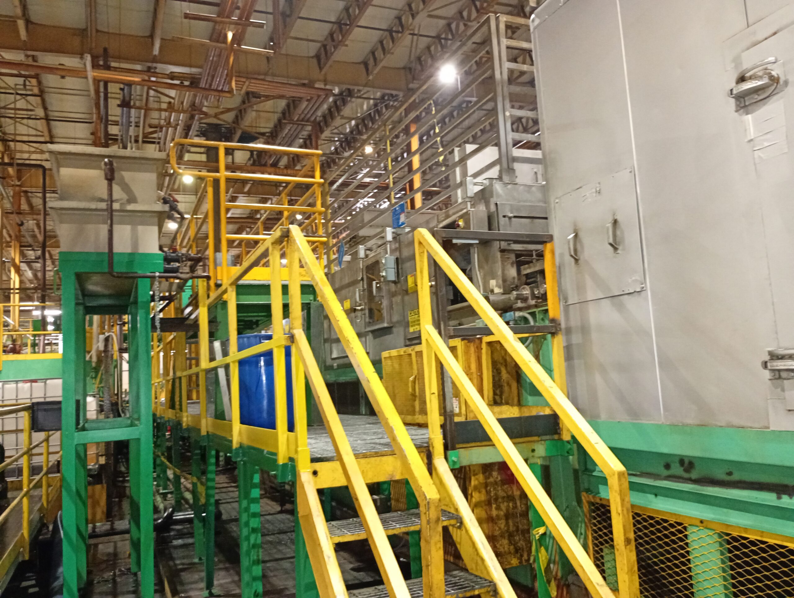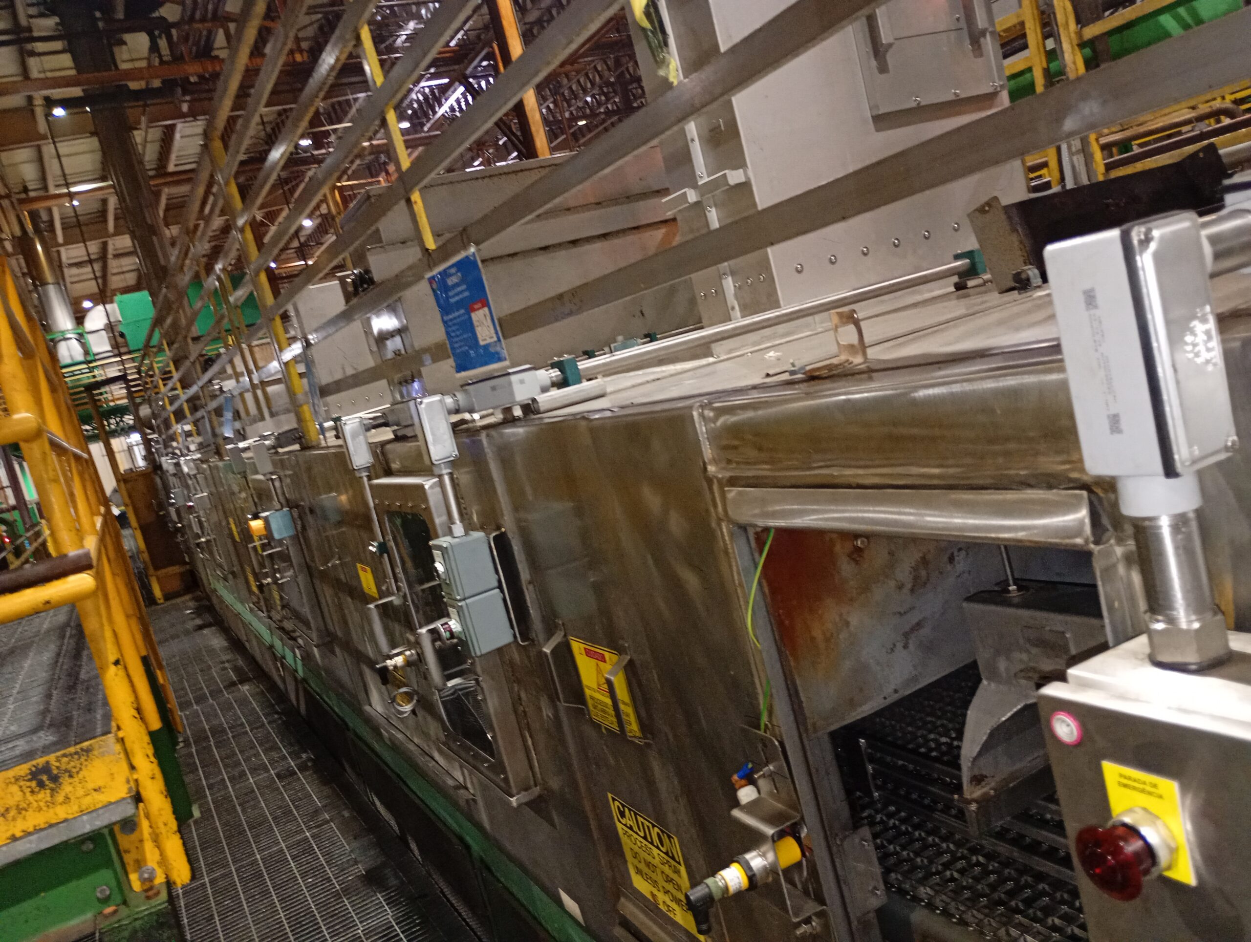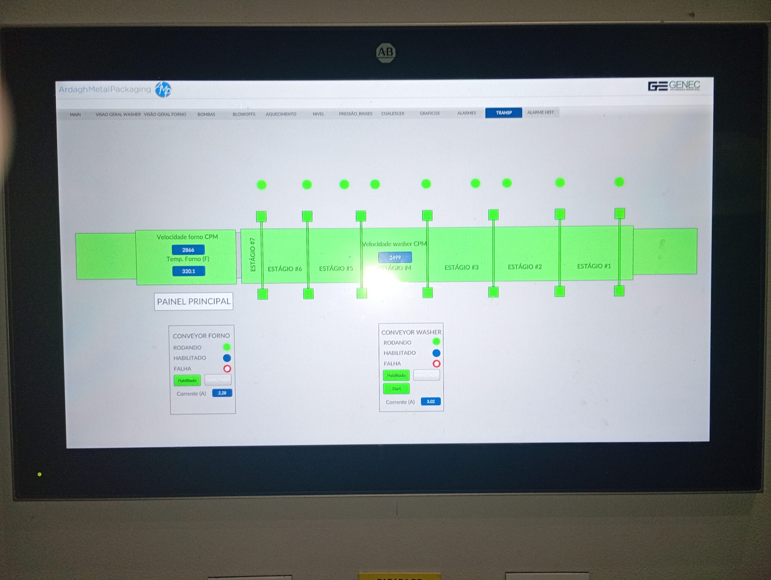 Retrofit de uma lavadora de latas de alumínio onde foi retirado um PLC5 e instalada uma CPU L81ES e uma IHM Allen Bradley modelo Optix. Todos motores partidas direta foram trocados por inversores Danfoss comunicando diretamente via rede ethernet com o PLC. Parte de segurança feita nas próprias rotinas de segurança do PLC Safety.